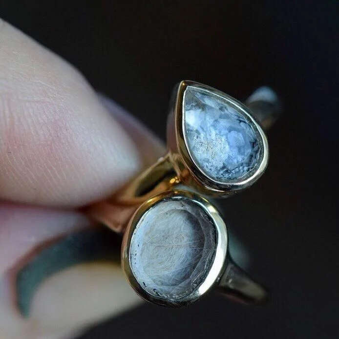 The pendants pictured here are examples of custom hairwork keepsake necklaces made for previous clients containing the hair of their departed loved ones, or their baby's first haircut. This listing is for a necklace customized just for you. Working with the hair you have supplied, I will weave it and set it beneath a handout crystal.