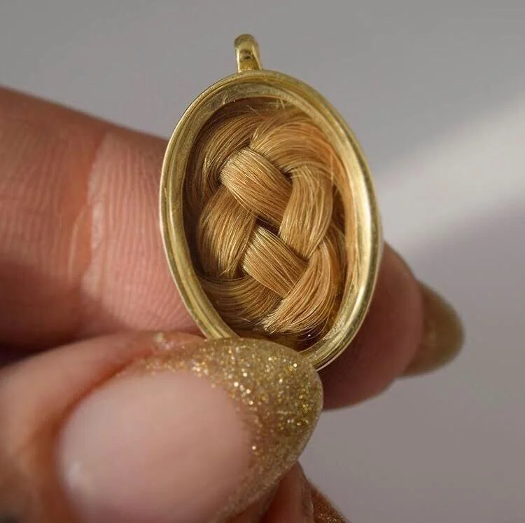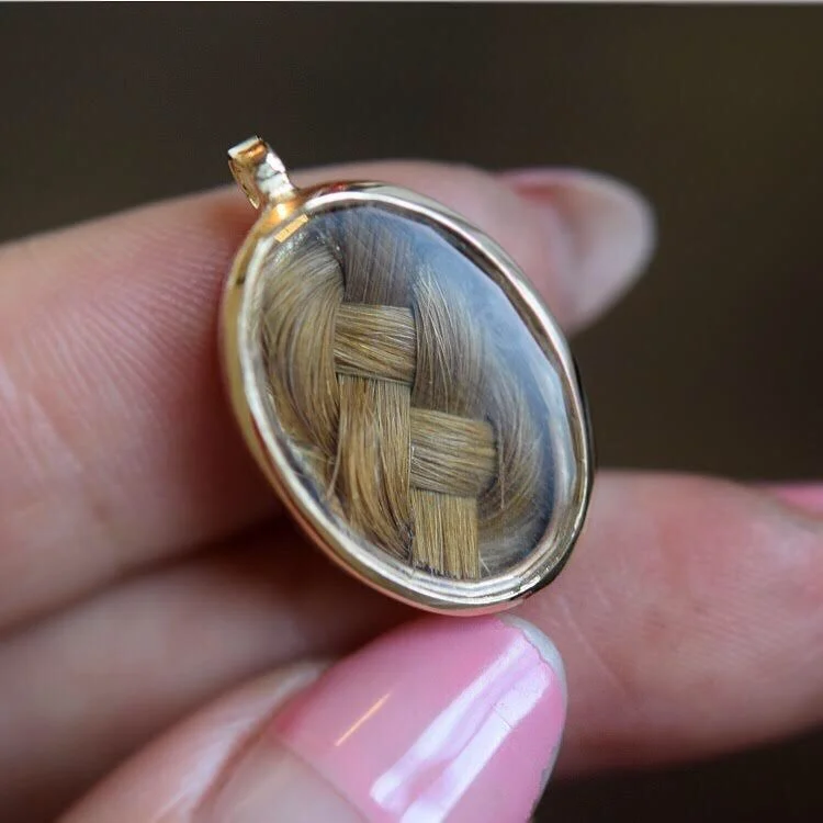 Dating back to the late 18th century, treasured hairwork jewelry has been made not only as objects of beauty and personal expression, but also in remembrance of the lives of loved ones lost and memorials of relationships.